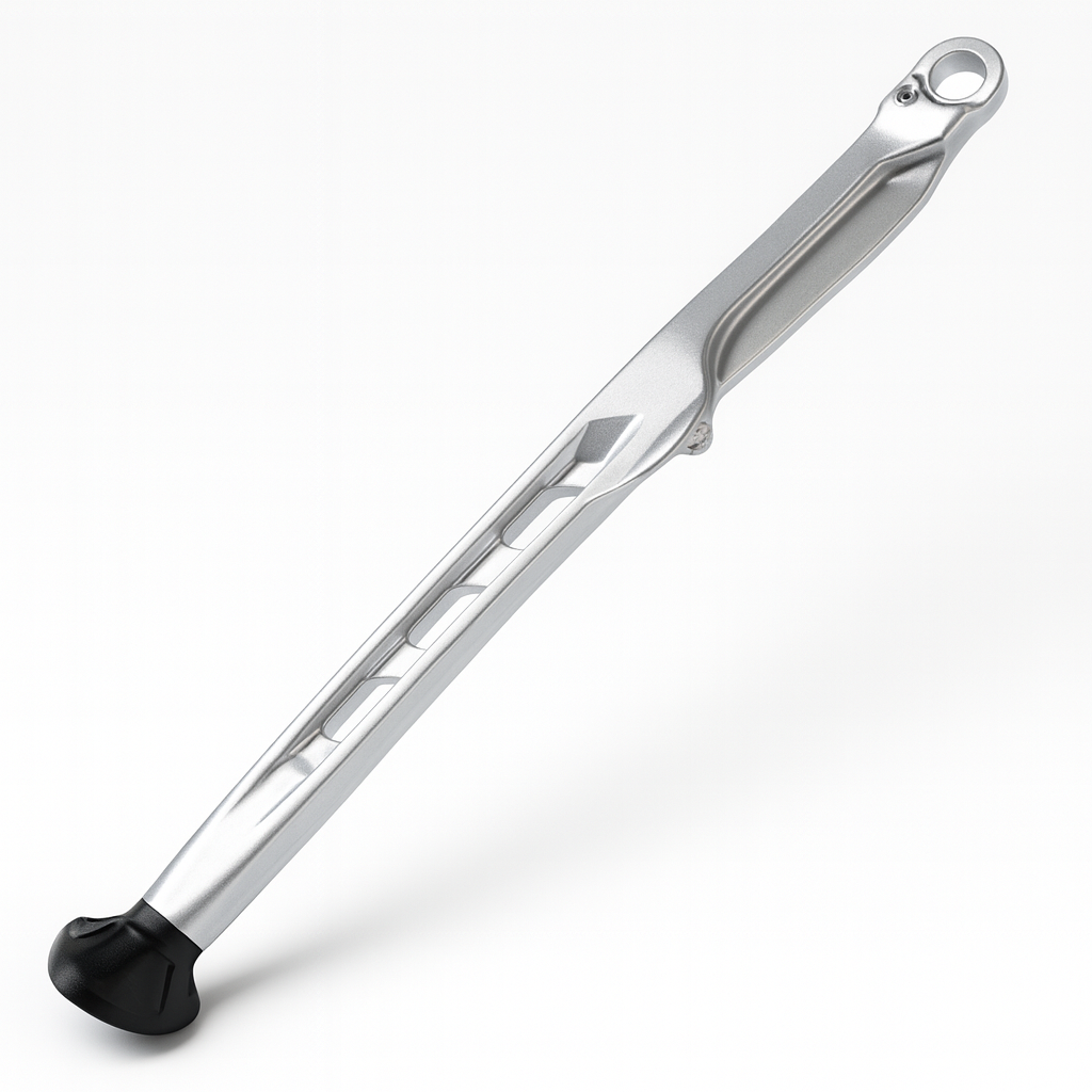CNC-machined aluminum side stand, designed for maximum stability, sporty look and long-lasting performance.